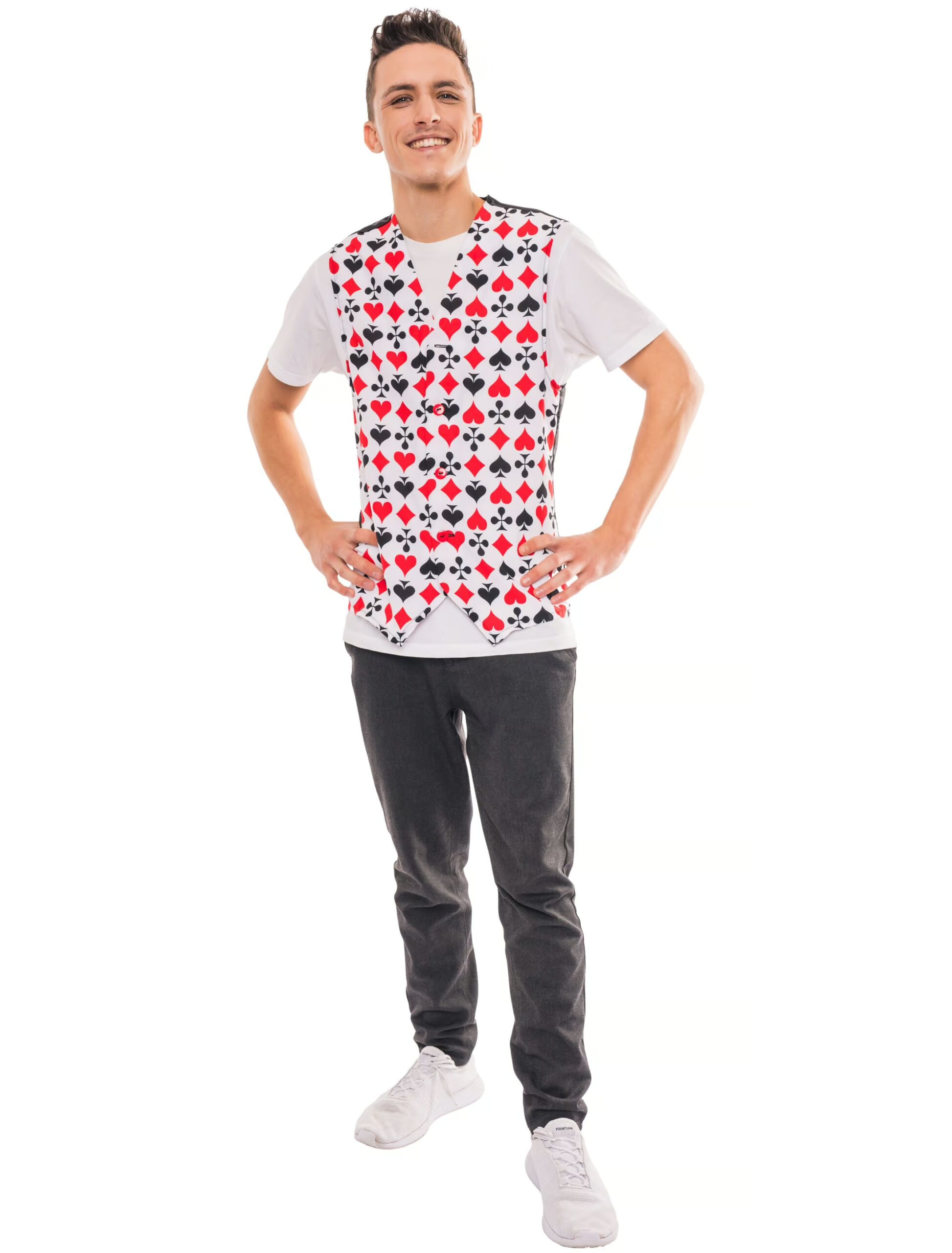 Weste Kartenspieler Herren schwarz/weiß/rot 4XL/5XL, ideal für Karneval & Fasching