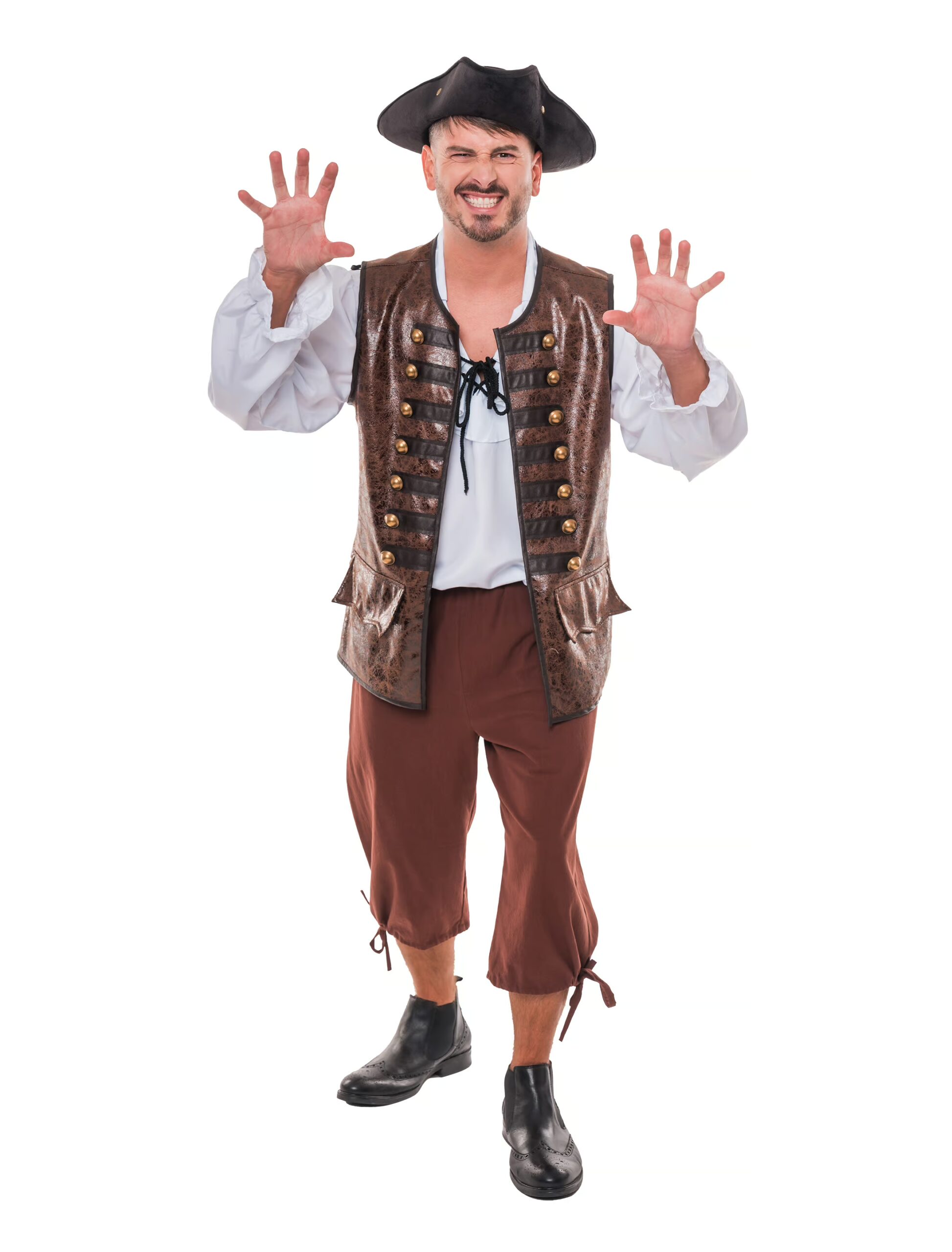 Bereit für dein nächstes Abenteuer auf hoher See? Mit unserer Piratenweste für Herren wird jeder Landgang zum stilvollen Beutezug! Die Weste kommt mit zwei schicken Knopfreihen – nicht zum Schließen, sondern einfach nur, weil’s verdammt gut aussieht. Links und rechts findest du je eine Tasche – perfekt, um Goldmünzen, geheime Schatzkarten oder einfach deine Snacks zu verstauen. Ob du nun als berüchtigter Freibeuter, charmanter Rum-Liebhaber oder stilechter Schiffskapitän auftreten willst – diese Weste macht deinen Look komplett!