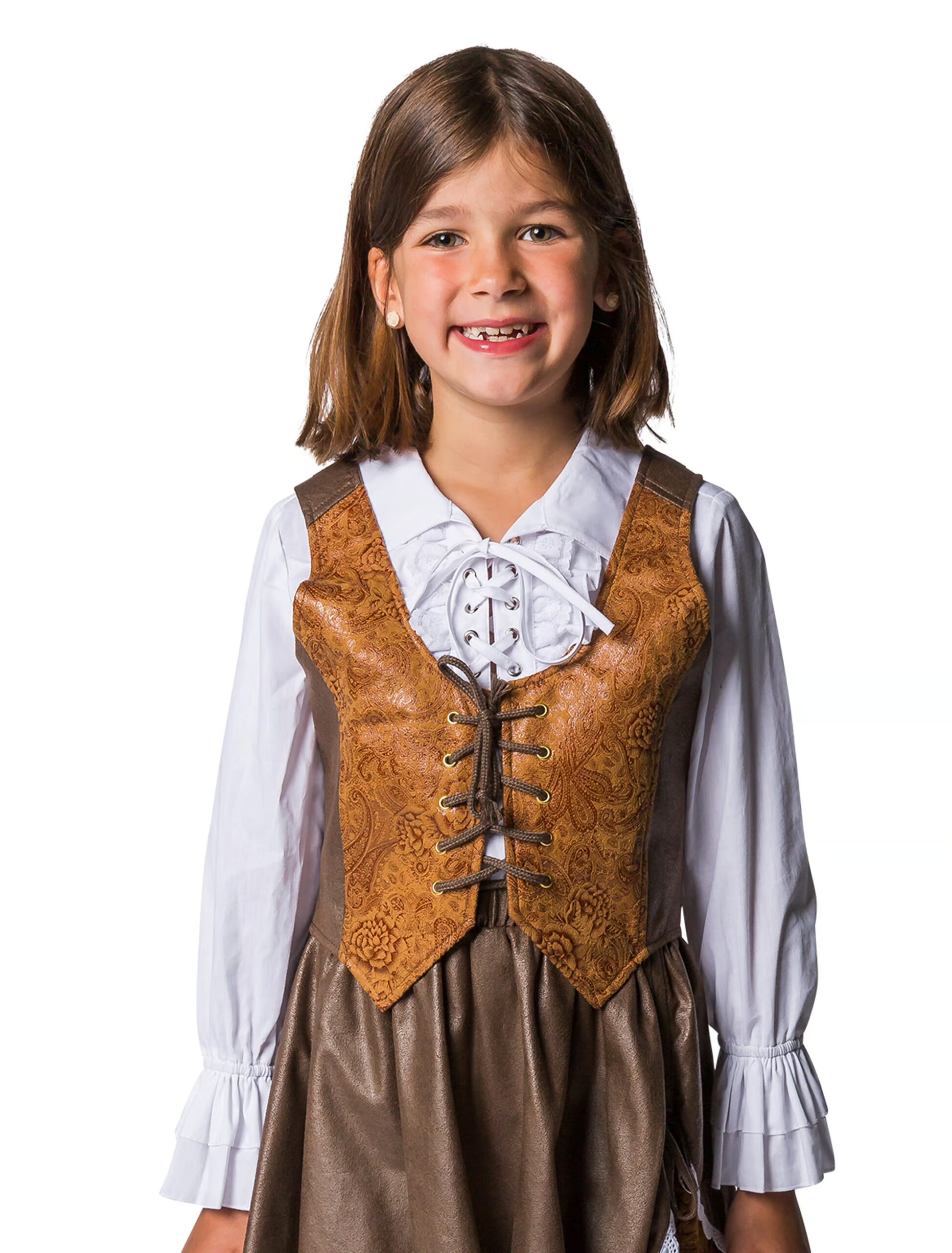 Als Piratin umsegelst Du die sieben Weltmeere, plünderst Inseln und suchst nach Schätzen. Ausnahmsweise legst Du für Karneval und Fasching am Hafen an. Unsere braune Piratin Weste für Mädchen darf hier nicht fehlen. Dieses schöne Kostümteil passt wunderbar zu Deinem Kostüm an Karneval und Fasching. Die Weste ist aus 100% Polyester gefertigt und besitzt einen Kordelzug in der Front. Sie ist unten am Rücken mit einer verstellbaren Schnalle versehen.