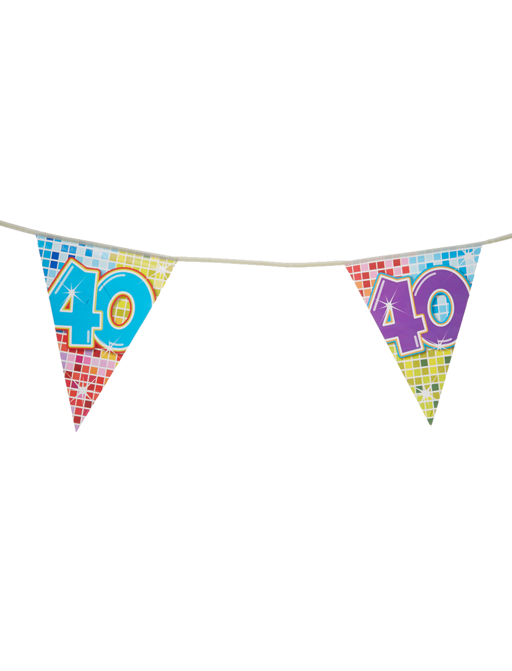 Du willst für einen Freund oder eine Freundin eine Überraschungsparty zum Geburtstag veranstalten und bist nun auf der Suche nach den geeigneten Accessoires dafür. Damit Du auch die Wände des Partykellers schön schmücken kannst, darf eine Wimpelkette mit der 40-Jahre-Aufschrift nicht gemisst werden. Du kannst mit ihr eine große Wand zum Highlight des Raums machen. Auf sechs Metern wird dem Überraschten sein Alter vor Augen geführt, denn die 40-Jahre-Wimpelkette ist schön groß und durch ihre bunten Farben auffällig für jedermann.