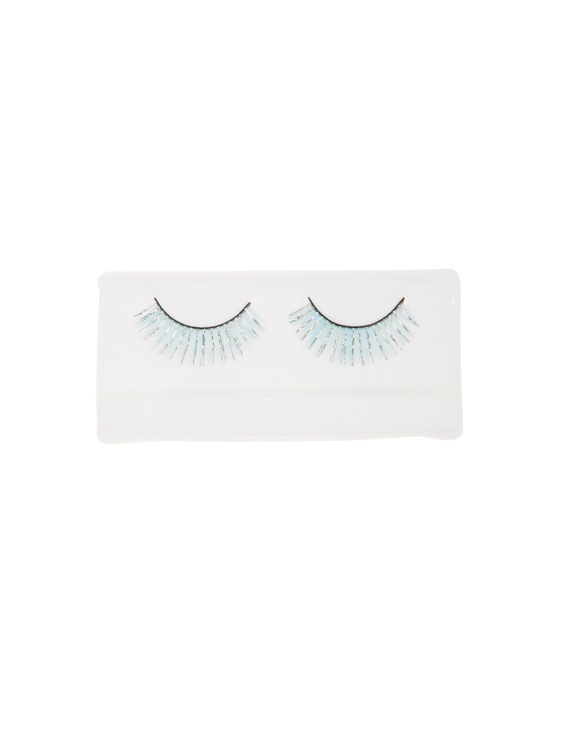 Hübsches Accessoire, das Deine Augen perfekt betont! Diese langen, hellblauen Wimpern mit den silberfarbenen Highlights verleihen Dir einen unvergesslichen Augenaufschlag und passen besonders gut zu Eisprinzessinnen-, Engel-, Einhorn- oder Fee-Kostümen! Mit Hilfe eines speziellen Wimpernklebers kannst Du sie bequem anbringen.