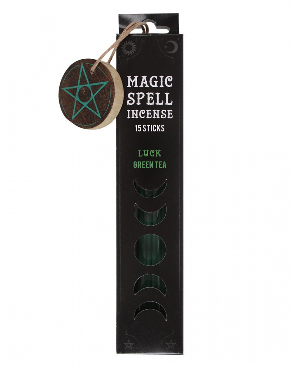 Grüner Tee Zauberräucherstäbchen für Glücklichsein Pagan Räucherstäbchen als Esoterik Dekoration Die angenehm duftenden ",Grüner Tee", Räucherstäbchen bringen Glück und Spiritualität in dein Leben. Zünde die Räucherstäbchen an und hilf deinem Schicksal auf die Sprünge. Die Packung mit 15 Grüner Tee Zauberräucherstäbchen für Glücklichsein ist mystisch designt und eine geniale Pagan Geschenkidee. Jedes Stäbchen ist etwa 24 cm lang und sollte beim Abbrennen in der dafür vorgesehenen Halterung sein. Lieferumfang: 1 x Grüner Tee Zauberräucherstäbchen für Glücklichsein Inhalt: 15 Stück Farbe: Grün Größe: ca. 24 cm Material: Räucherstäbchen 15 Räucherstäbchen mit Halter Räucherstäbchen duften nach Grünem Tee Geschenk und Glücksbringer für Wicca Fans Pagan Wohndeko für Mystik Der Artikel ist ein Dekoartikel. Nicht für Kinder unter 3 Jahren geeignet. Kann Kleinteile enthalten, die verschluckt werden können – Erstickungsgefahr. Niemals unbeaufsichtigt brennen lassen!