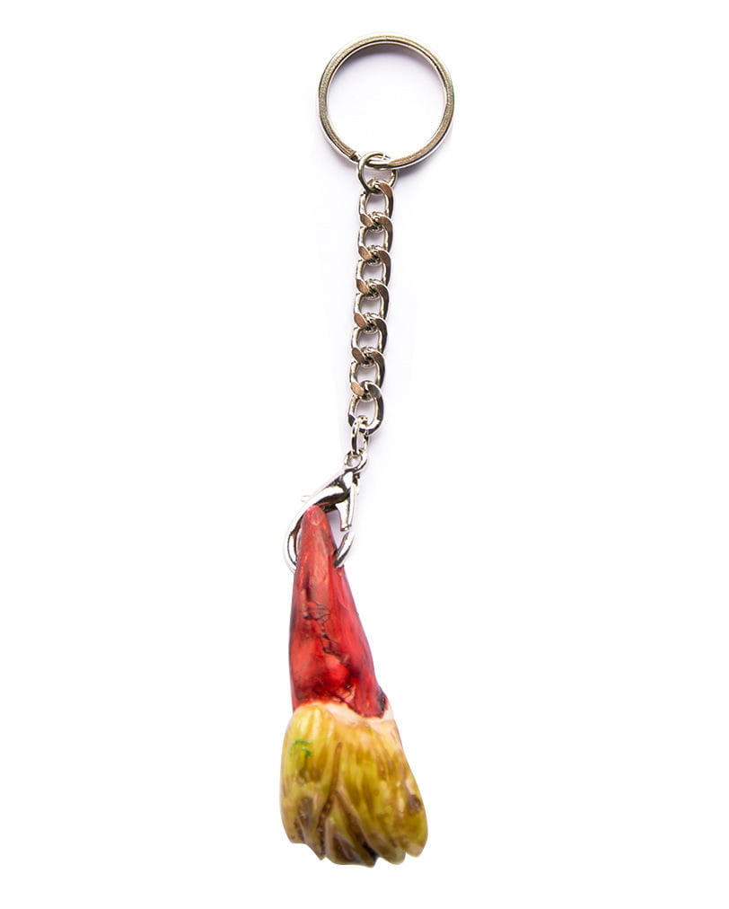 Zombie Zahn Schlüsselanhänger Kostümzubehör Blutiger Zombie Zahn als Trophäe und Kostümzubehör für Zombie Fans Wenn man Zombies ihre Beißerchen zieht, werden sie im Handumdrehen zu zahmen Bestien. Mit dem Zombie Zahn Schlüsselanhänger wirst du als Zombie Jäger zum Bezwinger der wandelnden Leichen. Der handgemachte Zombie Zahn Schlüsselanhänger aus Dental-Acryl besteht aus einem ca. 5 cm langen detailreich verarbeiteten Zombie-Zahn und einer Kette aus Metall samt Ring, mit dem sich das Horror-Equipment je nach Belieben an Jacke oder Hose befestigen lässt. Lieferumfang: 1 x Zombie Zahn Schlüsselanhänger Farbe: beige/rot/silbern Material: Kunststoff/Metall Größe: ca. 5 cm lang