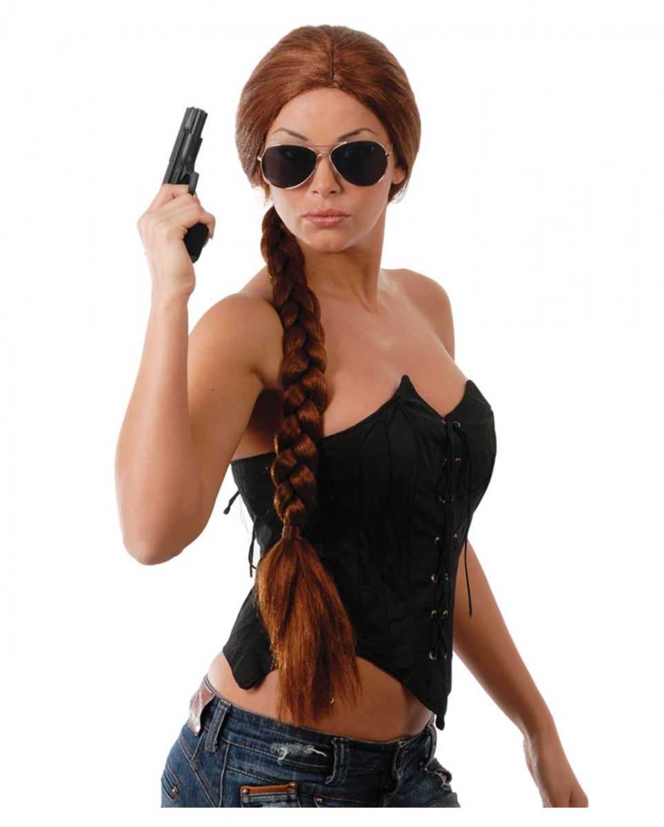 Zopfperücke Lara geflochten für Fasching Braune Karnevals-Perücke mit Zopf im Action-Style Werde mit unserer geflochtenen Zopfperücke Lara für Fasching schnell und unkompliziert zur mutigen Abenteurerin und begib dich auf die Suche nach verborgenen Schätzen! Der Zopf sorgt wie bei Action Heldinnen üblich dafür, dass dir beim Klettern, Kämpfen und Schießen deine Haare nicht im Weg sind – ideal zum Tanzen auf den anstehenden Karnevals-, Faschings- und Mottopartys! Die geflochtene Zopfperücke Lara für Fasching weist einen schimmerndem braunen Glanz auf. Ein im Innern der Faschingsperücke eingearbeitetes, elastisches Netz verhindert störendes Kratzen, erhöht so den Tragekomfort und sorgt dafür, dass die Cosplay Perücke auf jede Kopfform passt. Der ca. 60cm lange Zopf des Fastnacht Zweithaars gibt dir sofort einen sexy Abenteurerinnen Look. Ein angedeuteter Mittelscheitel lässt die Karnevals Perücke realistischer wirken. Lieferumfang: 1x Zopfperücke Lara geflochten für Fasching Inhalt: 1 Perücke Farbe: braun Größe: Onesize für Erwachsene, Zopf ca. 60cm lang Material: 100% Polyester Brille, Oberteil und Pistole nicht enthalten! Dieser Artikel ist ein Kostümzubehör für Erwachsene. Es ist kein Spielzeug. Von offenem Feuer fernhalten. Nicht hitzebeständig, deshalb nicht mit Glätteisen oder Lockenstab behandeln.